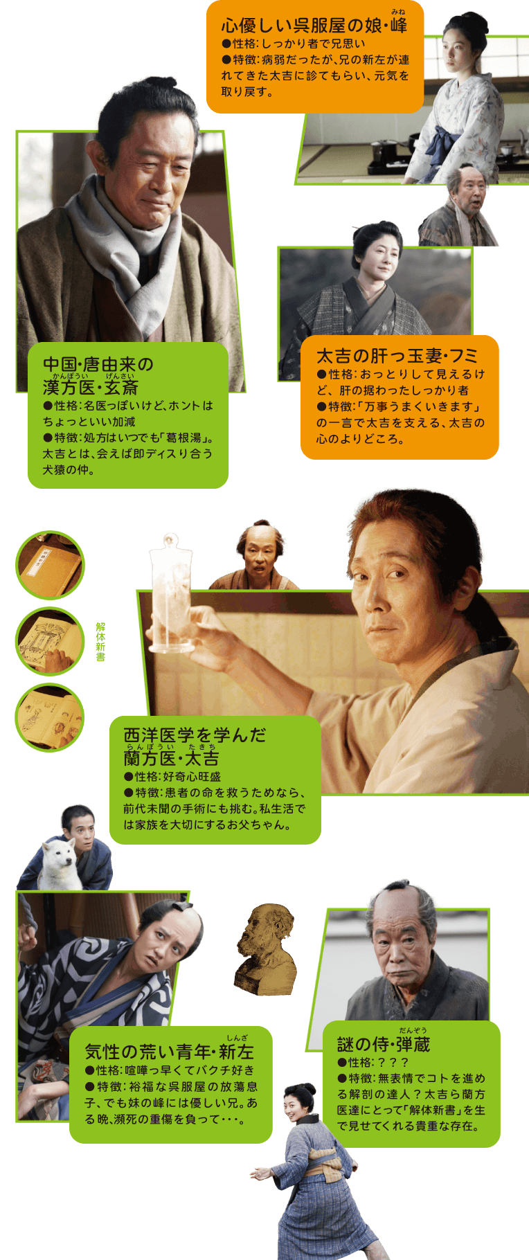 中国・唐由来の漢方医と西洋医学を学んだ蘭方医が競い合っていた時代、幕末。京都の村を舞台に、爽快な医療時代劇が誕生した。主人公の蘭方医らの奮闘と未来へと繋ぐ思い、そして彼を取り巻く医者たちや人間たちとのドラマが生き生きと描かれる。主演は佐々木蔵之介。本作の企画を進めるなかで他界した、京都の医大生の青春群像劇『ヒポクラテスたち』(80)の監督大森一樹の最後の映画企画であり、京都府立医科大学創立150周年記念映画。