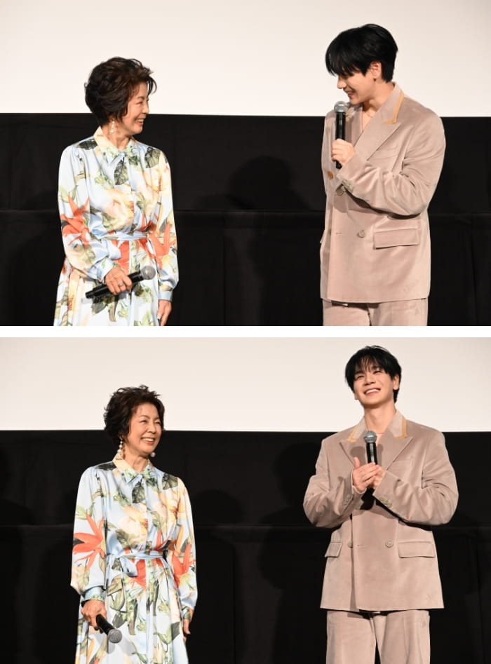 9月18日(木)丸の内ピカデリーにて本作のプレミア先行上映会が実施され、W主演のJO1の豆原一成と市毛良枝が上映前舞台挨拶に参加した。