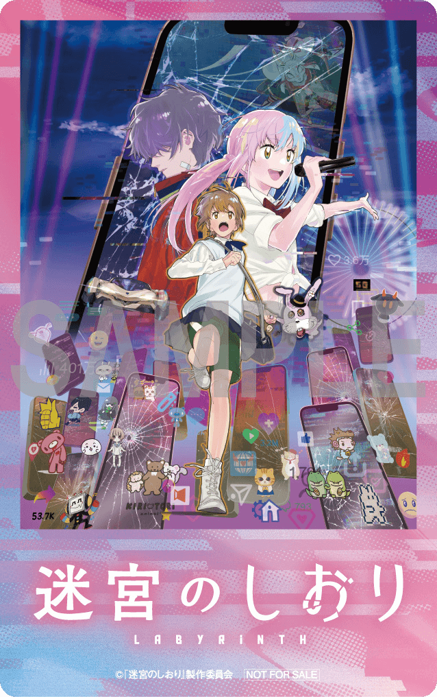 また河森監督は映画『迷宮のしおり』について、「スマホには個人情報、検索情報、発信した内容が入っています。自分の分身であり、また自分と合体した一つの存在でもある。そんなスマホの世界に閉じ込められた栞が、迷宮から脱出することができるのか。またその間には、SNSで“1億いいね”を獲得するとSHIORIが現実世界を乗っ取ってしまう。栞とSHIORIの対比を描いています」とコメント。